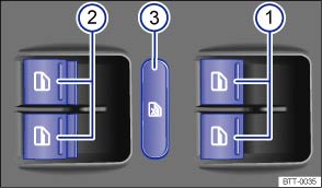 Fig. 32 In the driver door: buttons for the front and rear electric windows with one-touch opening and closing.