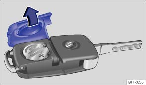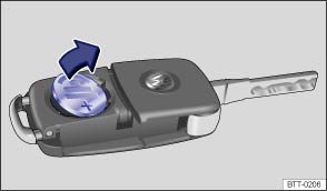 The battery is located on the rear side of the vehicle key underneath a cover.
