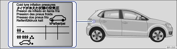 and safety warningsThe correct tyre pressure for factory-fitted tyres is shown on a sticker and applies to all-season, summer and winter tyres. The sticker is located on the inside of the tank flap.