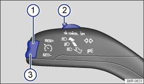 Fig. 123 On the left of the steering column: button and switch for the CCS