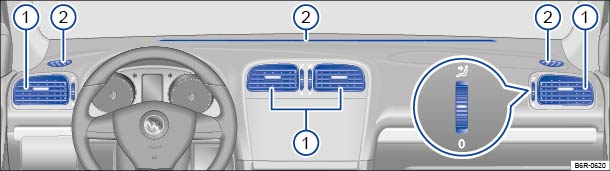 , the vent is closed. Additional vents can be found in the instrument panel , in the footwells and in the rear area of the vehicle interior.