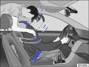 The airbag system is not a substitute for the seat belts. When triggered, the airbags only provide additional protection. Airbags are not triggered in all kinds of accidents. Even if the vehicle is equipped with an airbag system, all vehicle occupants, including the driver, must fasten their seat belt and wear it correctly while the vehicle is in motion. This reduces the risk of severe or fatal injuries in the event of an accident – regardless of whether an airbag is fitted for the seat.